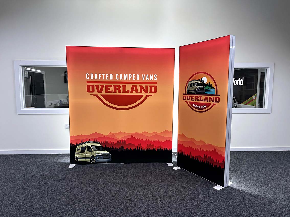 Premium illuminated display system with SEG fabric graphics and energy-efficient LED lighting — built for impact and ease of use.