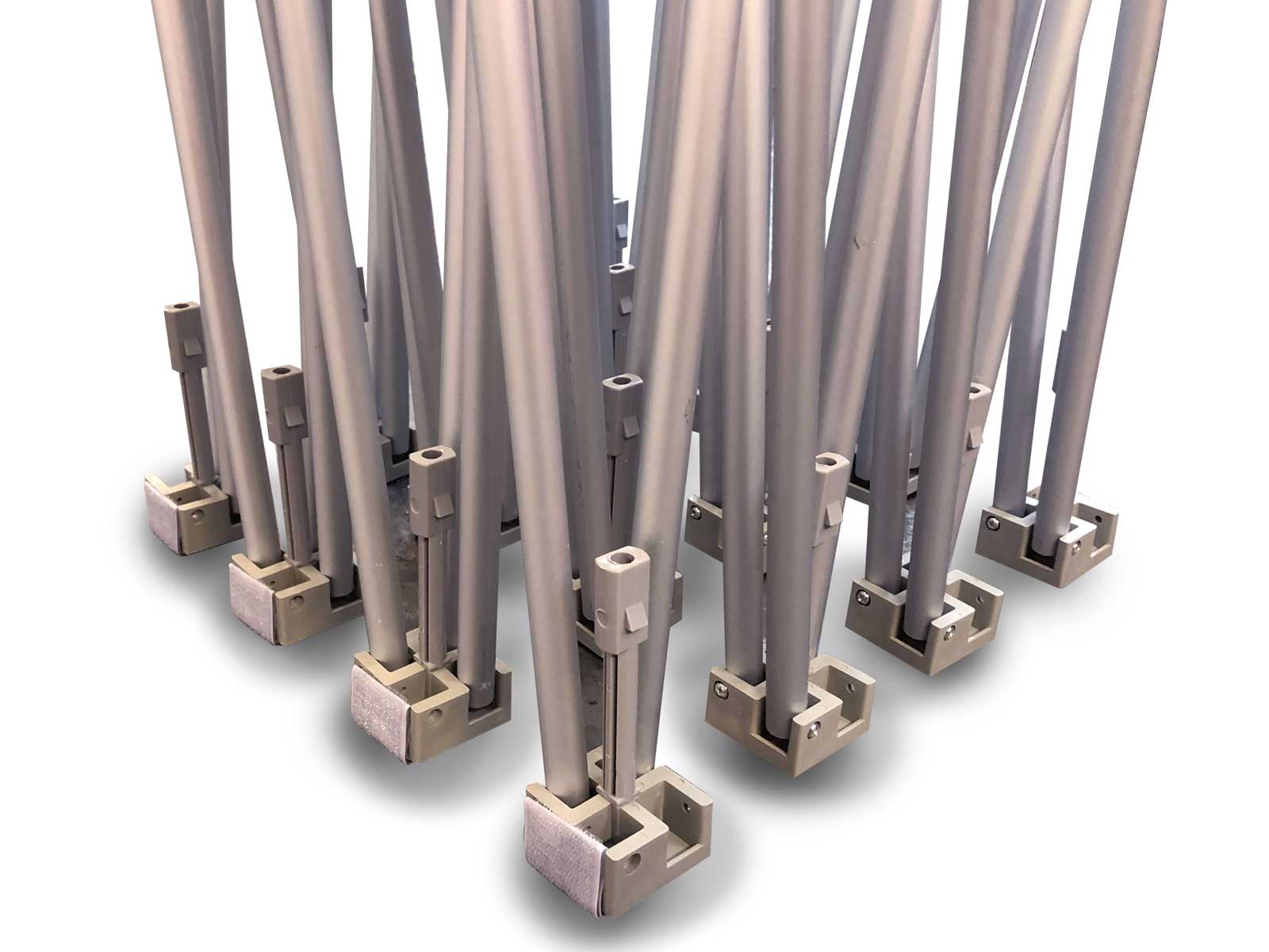 Two strong pop-up frames fit together to provide a substantial but lightweight structure. Your seamless fabric is then simply attached using velcro ties. The frame provides tension, smoothing out any creases in the fabric caused by transport or storage.