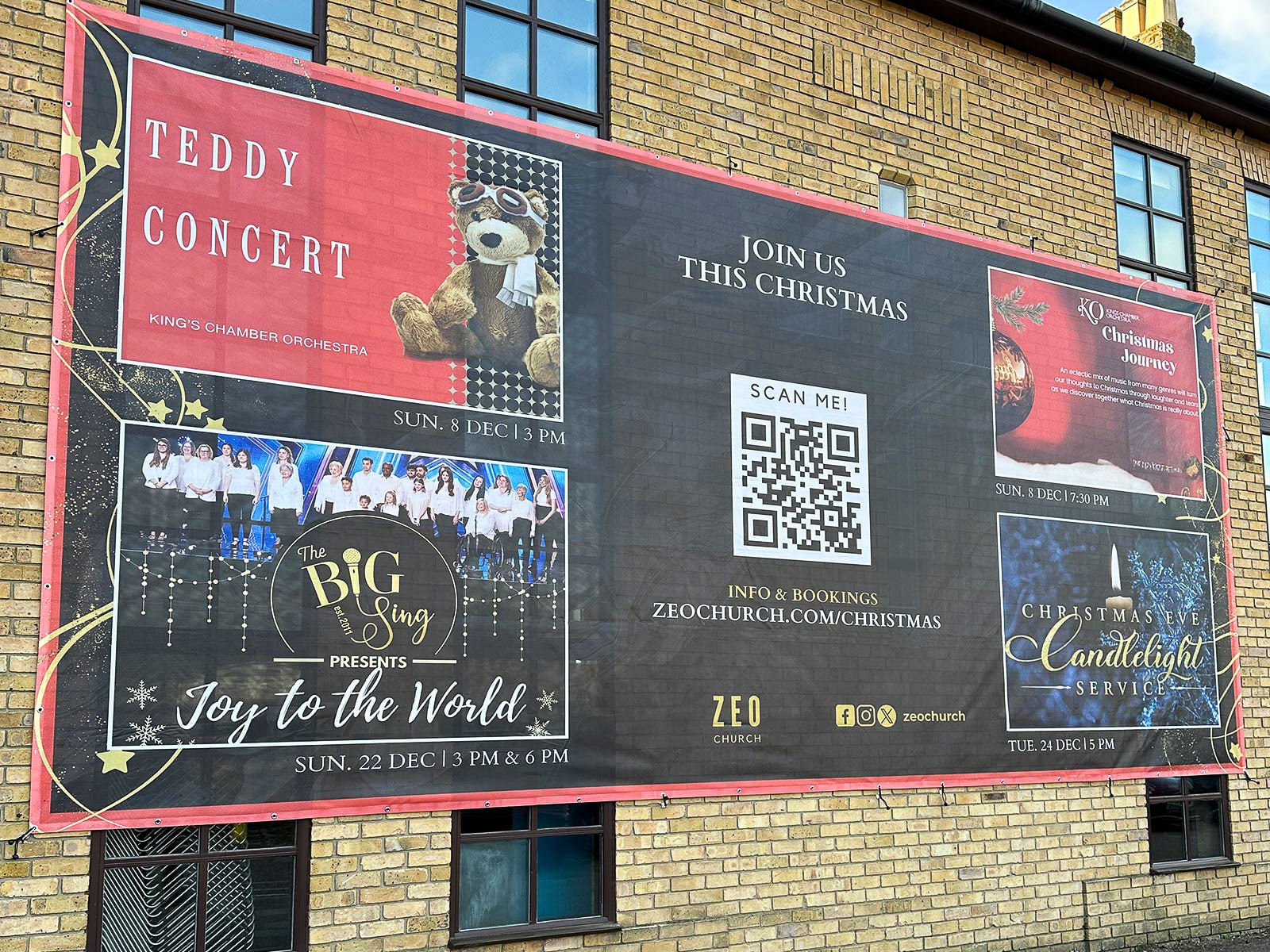 Less is more, cramming every little bit of information onto your mesh banner probably isn’t a good idea. Remember to use areas of space and give your design space to breathe. The best mesh banner designs are always simple and straight to the point.