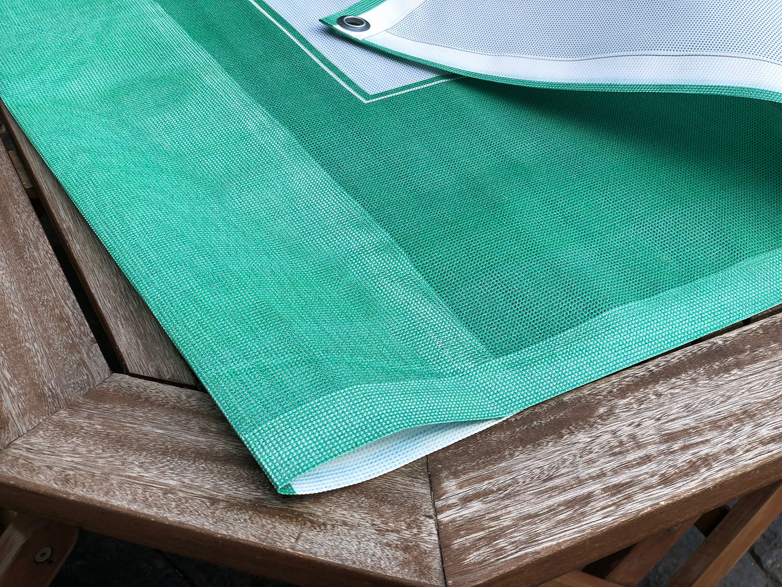 330gsm Premium Mesh PVC Banner printed in full colour one side, white reverse.