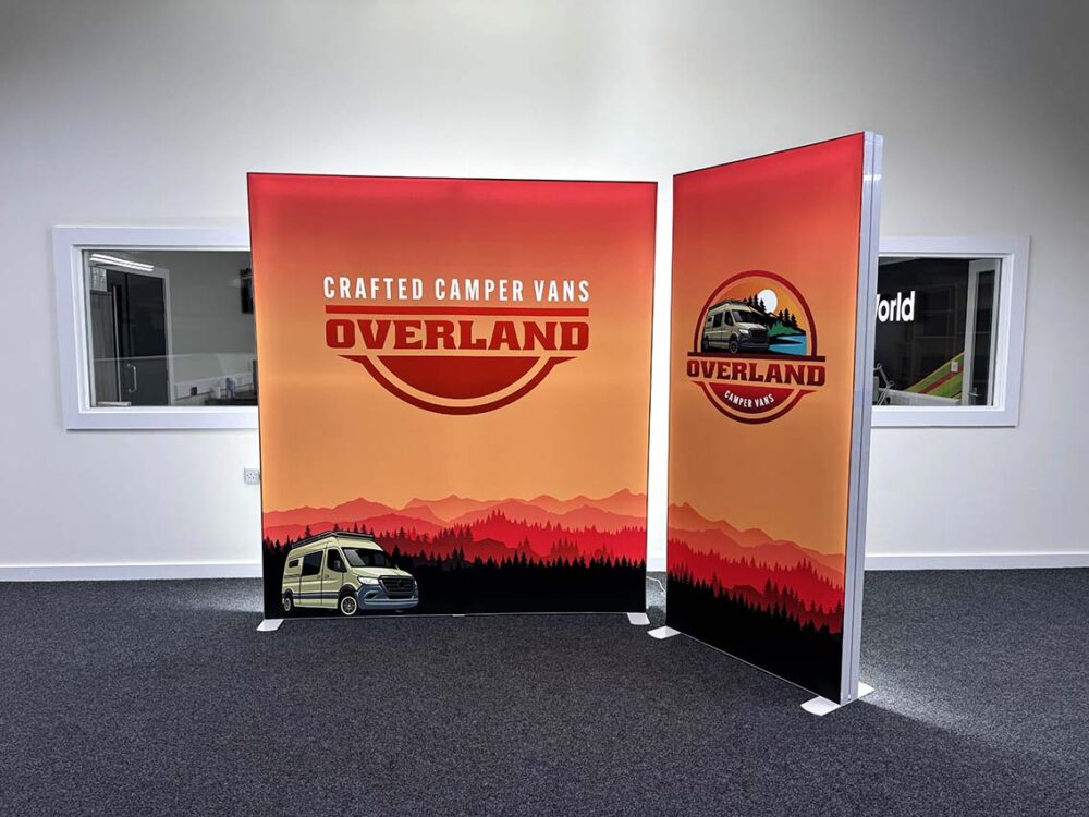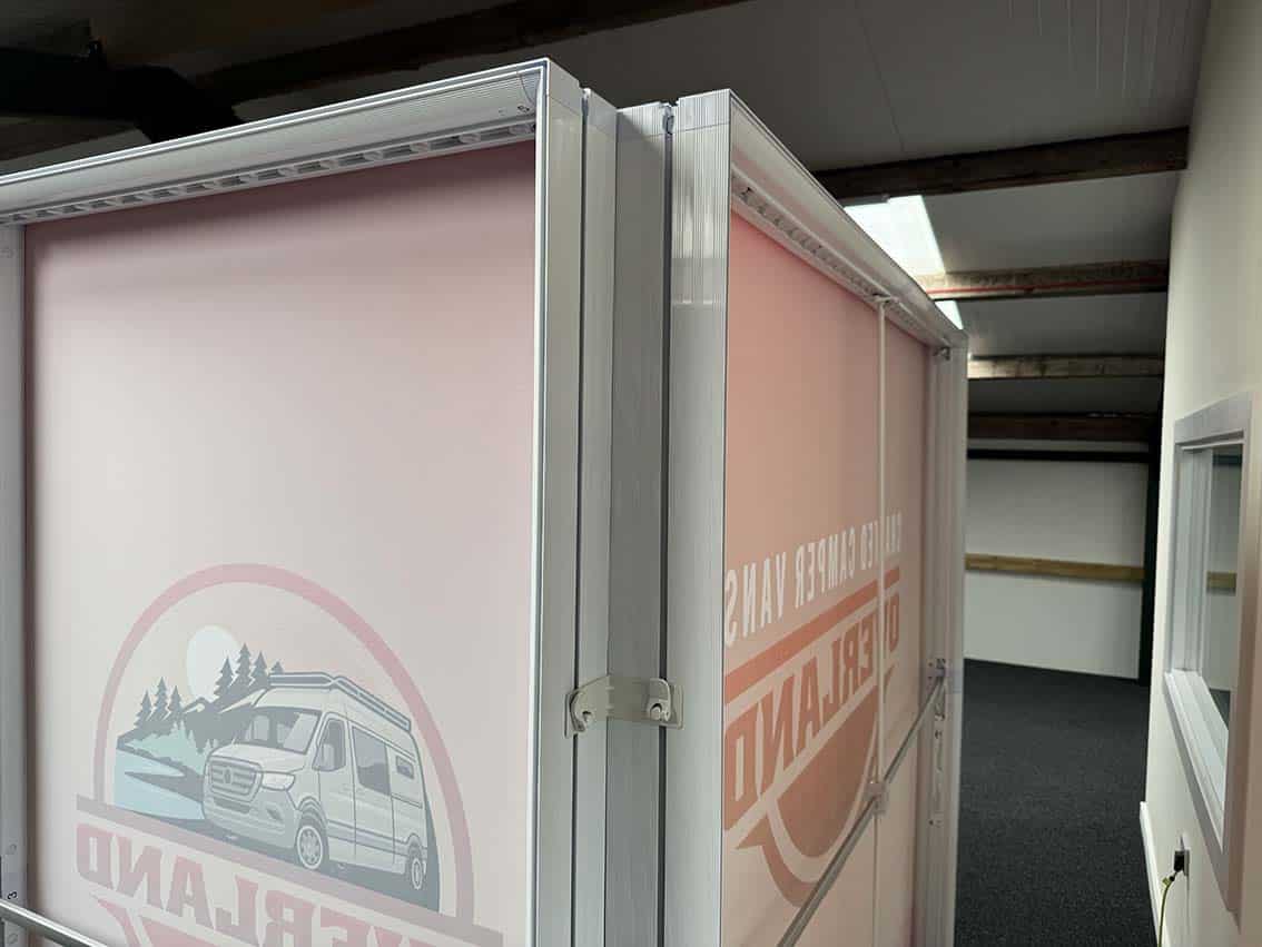 Premium illuminated display system with SEG fabric graphics and energy-efficient LED lighting — built for impact and ease of use.