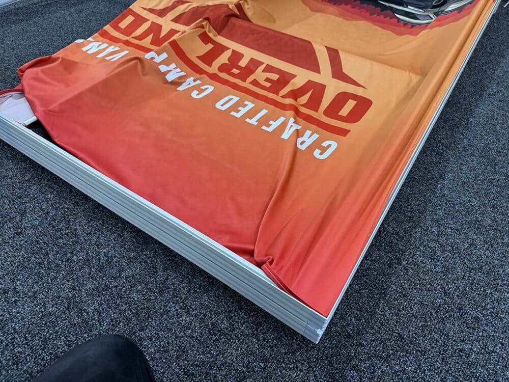 LED Fabric Display Lightboxes are illuminated display systems that combine high-quality LED lighting with custom printed fabric graphics. The fabric is stretched over an aluminium frame using silicone edge graphics (SEG) for a seamless fit. Built-in LED lights provide bright, even illumination from behind or along the edges of the graphic, making your visuals stand out in any setting.