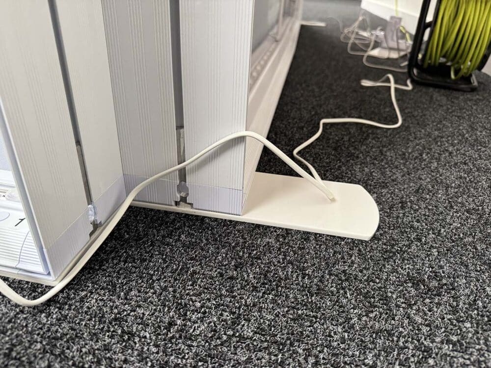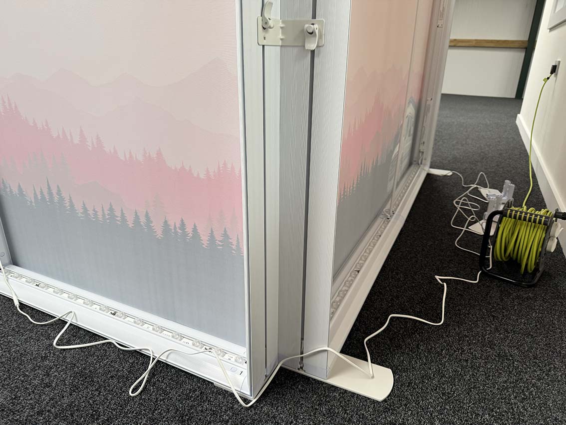 Assembly is easy and tool-free. The lightweight aluminium frame simply clicks together, and LED power connections are straightforward — making setup fast and efficient for events and exhibitions.