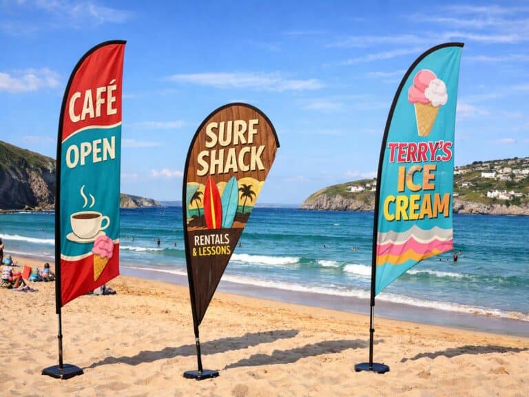 Banner World is the UK’s leading supplier of printed feather flags, offering sail flags in full-colour designs using dye-sublimation printing for deep, vibrant colours. Our feather banner flags are available in a variety of shapes, styles, and sizes to meet your needs, whether single-sided with a mirror-image reverse or double-sided with a block-out liner for clear designs on both sides.