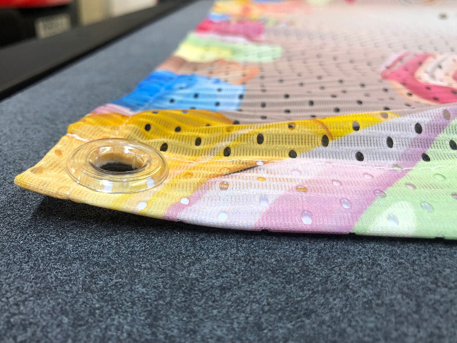 We print Airmesh Flag fabric on rolls up to 3m wide. Larger Airmesh banners will have a seam.